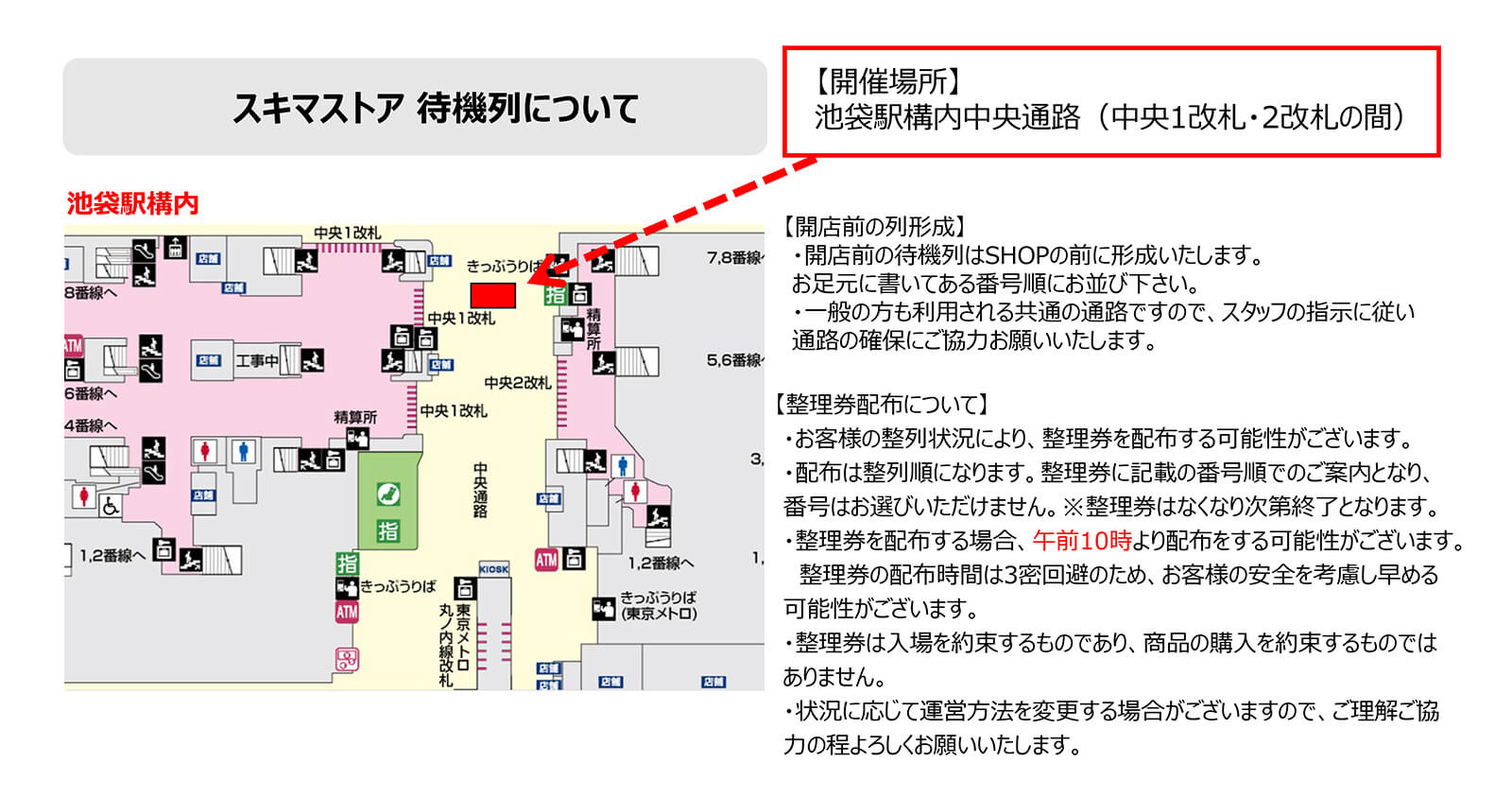 - ※ご来店の際はスタッフの指示に従ってください。スタッフの指示または注意事項に従って頂けない場合、商品の購入をお断りする、または、イベント自体を中止する場合がございます。